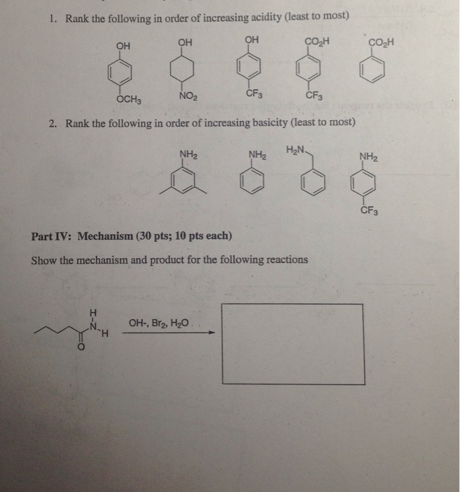 Solved 1 Rank The Following In Order Of Increasing Acidity Chegg Com